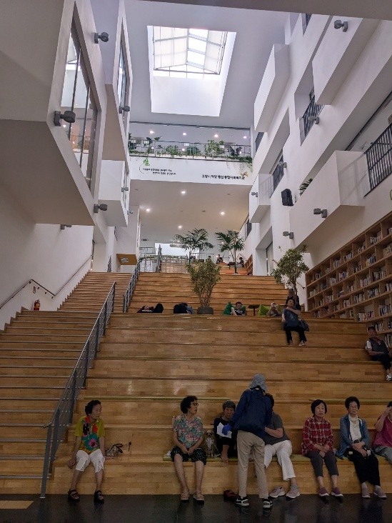④法人名は社会福祉法人僧伽院、高陽(コヤン)市から委託を受け、運営している社会福祉専門機関である。非常に規模の大きな建物で地下2階から5階まで延べ面積は4,633坪ある。地域住民のための社会福祉館、障がい者デイサービスセンター、そして市立幸福保育園がある。社会福祉館の利用は年間延べ100万人が訪れ、住民の「住居」「居場所」になっている。ミッションは「地域住民と共に築く幸せな福祉共同体」である。特にこの地域には低所得層密集地があり、そこに住民の1割が暮らしている。1階と地下1階に障がい者デイセンターがあるが、ここに発達障がい者15名、脳性麻痺障がい者14名が通っている。音楽、散歩、ダンス、バトミントン、そしてシャワーなどさまざまなプログラムが日程に組み込まれている。ここにも心理安定室が設けられている。障がい者と共に生きる地域社会福祉環境の実現を目指す。